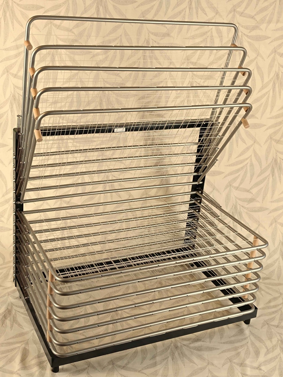 Lehce přenosný příruční sušák je určen pro odkládání a sušení restaurovaných archiválií během pracovních operací - šetří místo na pracovním stole.